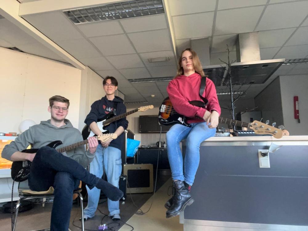 Momenteel hebben we een gitarist, een gitarist/toetsenist en een bassist en we zijn op zoek naar een drummer en een zanger(es). Je hoeft niet zo heel goed te zijn, zolang je oefent en je best doet, ervaring is niet nodig.